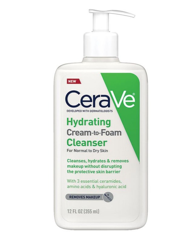 CeraVe Hydrating Cream-to-Foam Cleanser, developed with dermatologists, begins as a cream before transforming to a soft foam when you begin to lather it on the skin with water, and effectively removes dirt and makeup without stripping the skin’s natural moisture or leaving it feeling tight and dry.