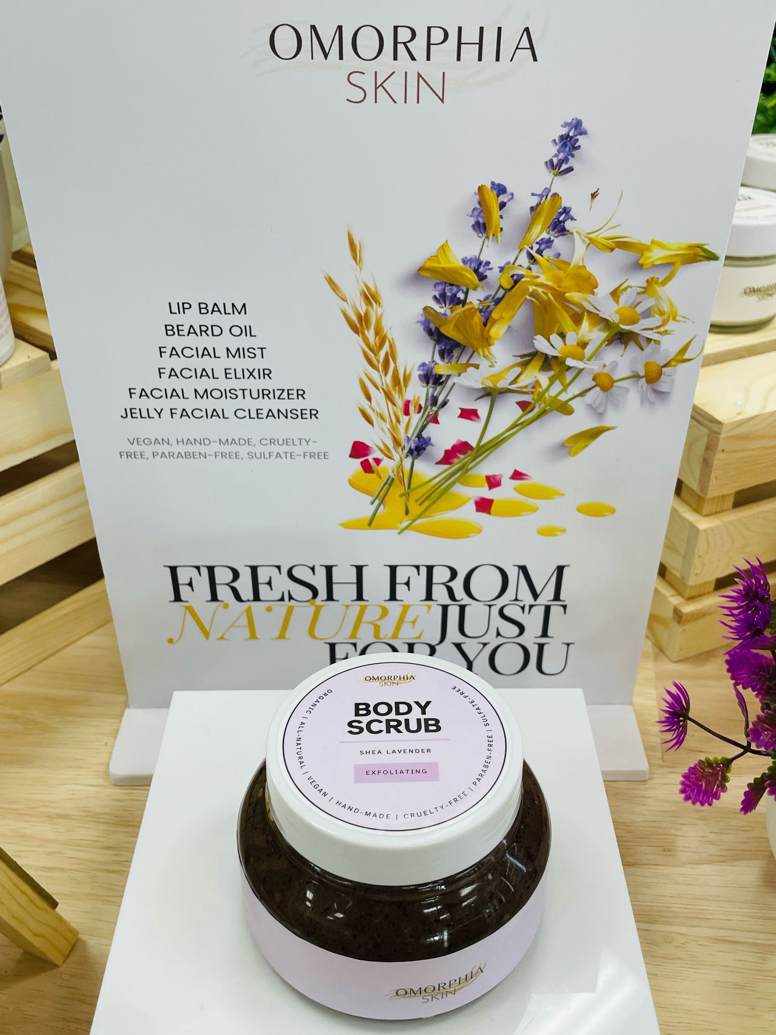 Experience a sense of well-being and radiance with our Omorphia Organic scrubs, available in a variety of enticing scents.